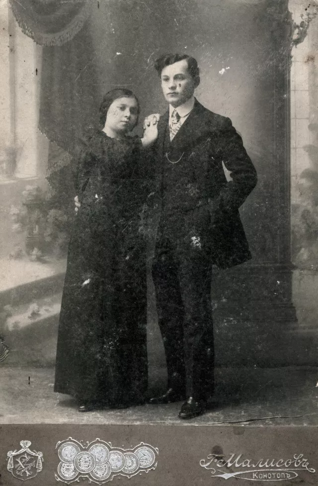 My aunt, sister of my mother, Rakhil Lurye, with her groom Aron Gopin. 1914, Konotop.