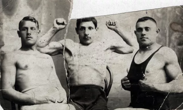 From left to right: an unknown person, my father Osher Gurevich, my uncle Lurye. Beginning of the 20th century; Konotop.