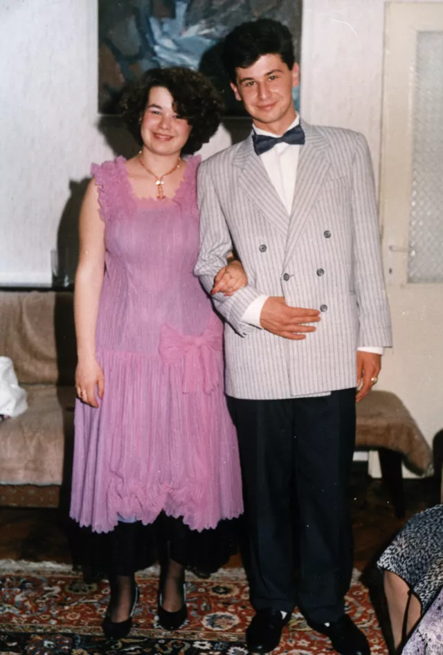 The photo shows our two grandchildren - Lyubomir (1970) and Yanita (1973) Punchevi, who are siblings The photo was taken in 1990 in Yanita's home in Vidin, hours before her graduation ball, to which she was accompanied by her brother. They are children of my older daughter Streya Puncheva (nee Alhalel). The sad thing is that two days after that graduation ball their father Ignat Punchev died suddenly.
