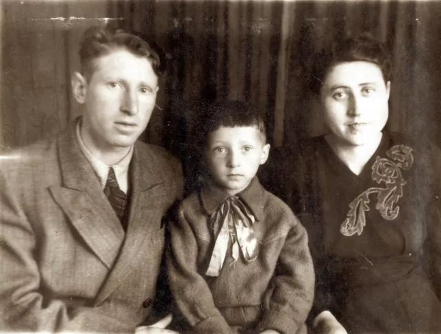 This is me, Grigoriy Fihtman with my wife Raisa Fihtman and our son Alexandr Fihtman. This photo was taken in Komargorod village of Vinnitsa region in 1952. This photograph was taken by a visiting photographer since we didn't have a photo shop in our village.