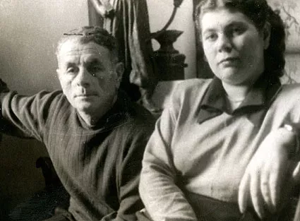 This is my father Yakov Yerukhimovich Husid, born in 1900 and his niece, my cousin Zhanna Shapiro, Klara's daughter, born in 1932. This picture was taken in 1952 in Kiev.