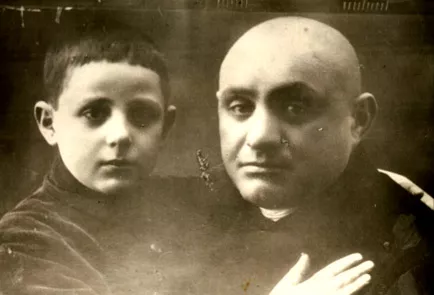 This is me with my father Aron Kagan. We had two copies of this photo: one for us and one for my grandmother, my mother's mother. This photo was taken in Kiev in 1926.