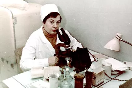 This photo shows my wife Rebecca Slavina in Leningrad in 1970s. She is at work.