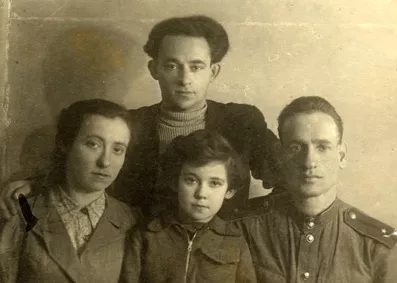 This is my family: my husband Gutman is sitting on the right, to the left is my sister Rochl Kamenman, her husband Alter Kamenman is standing and their daughter Zelda is sitting in the center. The picture was taken in Kaunas in 1946.