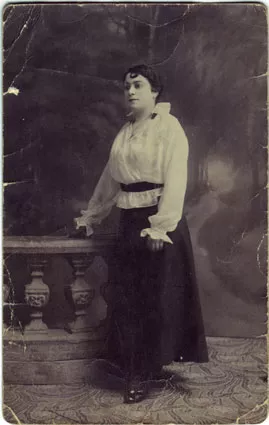 This is my mother, Haia Sulimzohn, as a young woman. The date on the back of the photograph is 20th July 1916, I believe it was taken in Bucecea.