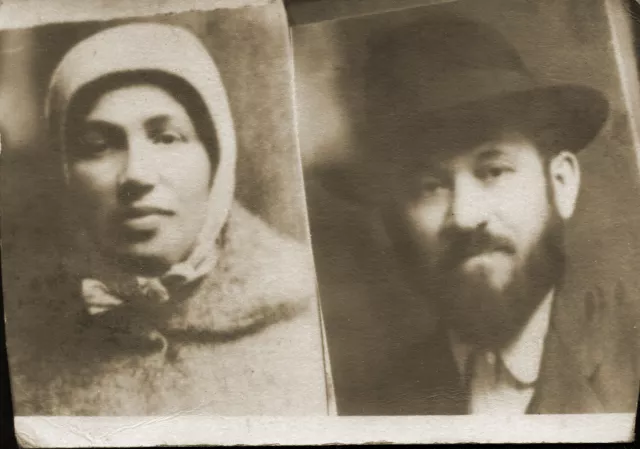 The originals were taken before the World War II, and a photo was found with the man and one with the woman after the war, and they put them together, next to each other. I have only this copy.