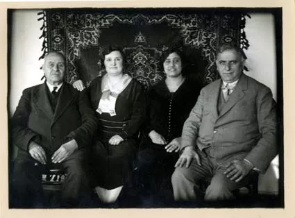 This photo was taken in 1931. From left to right you can see my maternal grandfather Hayim Benmayor, my uncle Dani’s wife, Emilia, my mother Fortune Danon and my father Jozef Danon. They took this picture as a souvenir for my grandfather, who was going to Germany to join his son there. The phot was taken at Elmadag [a district in Istanbul, on the European side, over the Golden Horn] but I don’t know who took it. I was not with them on that day, I was at home with the maid.