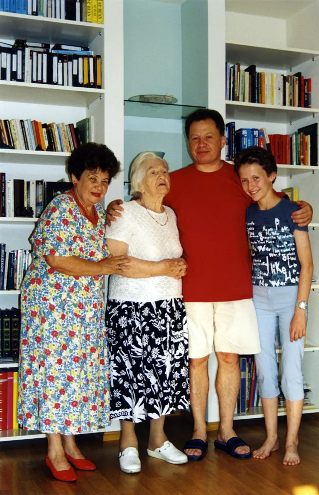 This picture was taken in my son Wlodzimierz's home, in Warsaw, in 2003. There's my mom, Gustawa Birencwajg, my son, Wlodimierz Leszczynski, my granddaughter, Zofia Leszczynska and me, Halina Leszczynska.