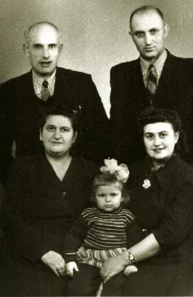 This is our family photograph, taken in Bendery in 1960 on the occasion of my sister’s and her husband's arrival. I, Hana Muchnik, am on the right, my husband, Isaac Fishman, is behind me, my sister Elka Vinograd, nee Muchnik, is beside me, her husband, Mendel Vinograd, is behind her, my daughter Goldina is in front.