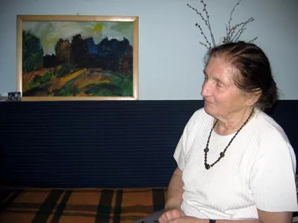 This is me in my apartment. This picture was taken by Joanna Fikus during my interview for Centropa in February 2005. On the wall, you can see a picture which was painted by my daughter-in-law, Beata.