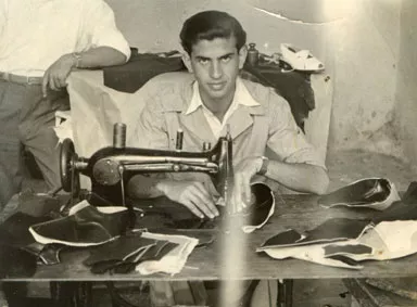 This is Hari Finchelstein, the cadet, my youngest brother. Hari was born in 1925. I believe this photograph was taken when he started working at the leather dressing machine; the photograph was probably taken immediately after the war.