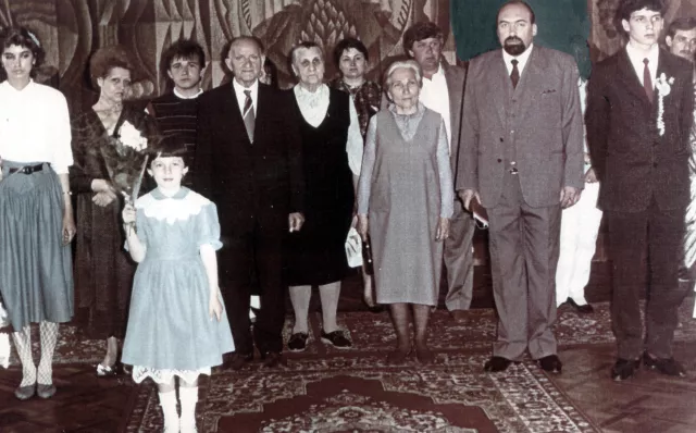 Wedding of my older granddaughter Natasha. My son Victor (with a beard), I am standing beside him and the rest are Natasha's relatives. Photo made in Lvov in 1990.