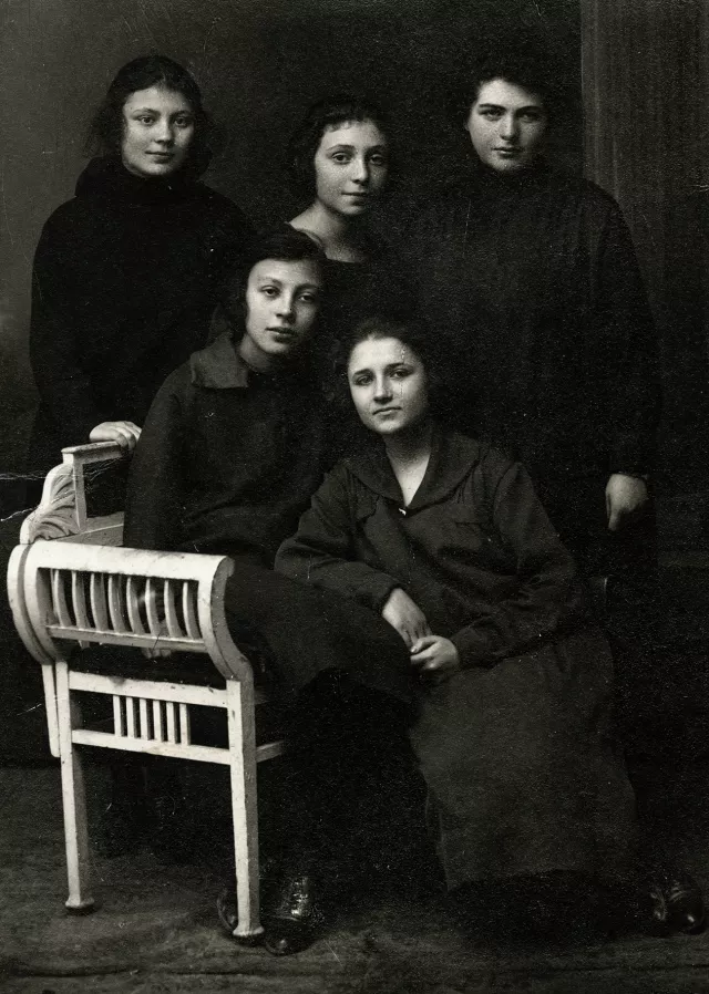 This is a photo of my mother Haya Peisakh (sitting on the chair) with her friend Ida (second from left - standing near mother).