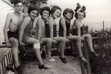 This photo was taken in our yard in Piestany. From left: Karol Kürti, Alica Herzog, Edit Porges, Magda Erdelyiová, Eva Herzog and I (Heda Ambrova). Young people used to come to our place often. Our yard was this ‘family center,’ and everyone felt comfortable there. Our door was open to everyone.