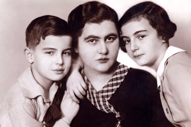 My mother, Henriette Mizrahy [nee Schonfeld], is in the center, with her children: me, Dan Mizrahy, on the left, and my sister, Mira Cotin [nee Mizrahy] on the right. The photograph was taken in 1933 in Bucharest.