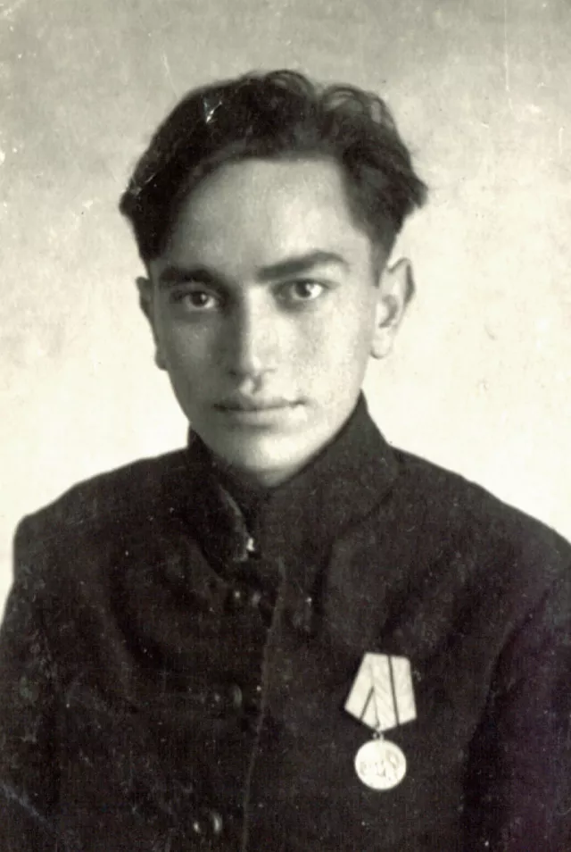 My parents were evacuated in Voronezh oblast [Russsia]. I went there. My parents and I settled in a village not far from Voronezh, 650 km to the east from Kiev. I decided to finish the 10th grade, but did manage since I received the notice to appear in the military enlistment office in 1942. It was drafting of my age. I turned 18. Since I finished 9 grades, it was decided to send to the military school. We were brought to the military school in Balakhna [Russia, 1100 km from Kiev], a town about 50 km away from Nizhniy Novgorod. The studies lasted for 5 months, and then we got the rank of the junior lieutenant. It was the 3rd months when the horrible battle by Stalingrad started. The entire school, 450 people, was sent to Stalingrad. I had never felt more fear, terror and hatred to the Germans during entire war experience. The city was devastated, shells and mortar bombs were aimed at one and the same place, making a powder out of sand. We went by Kalach and I saw the camp of our captured soldiers, frozen to death in dug-outs, with frozen blood, with wounds not being bandaged. I saw huge moats with corpses. Just imagine a moat as deep as 3-storied building, and not the house length, but the block length. In spite of the winter time we could feel cadavers smell.