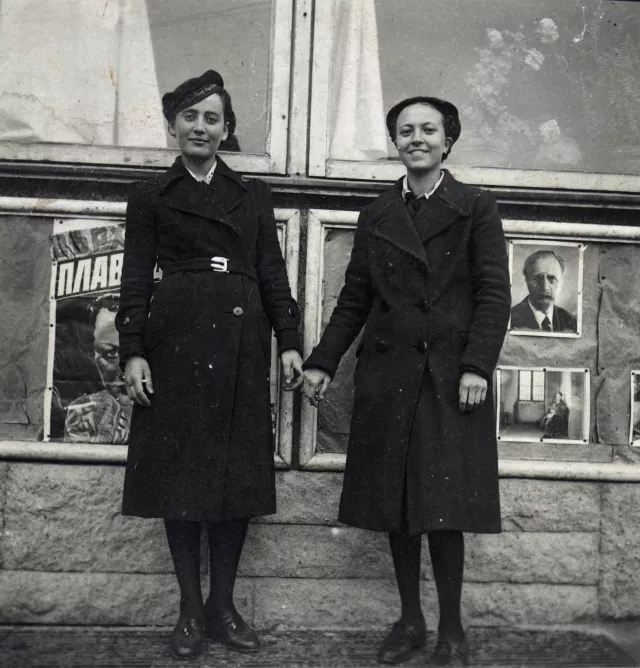 This is a photo of the vocational school in Dupnitsa in the 1930s. I’m with my friend Kadina, who’s on the left. She’s a Jew. We studied all obligatory subjects and tailoring.