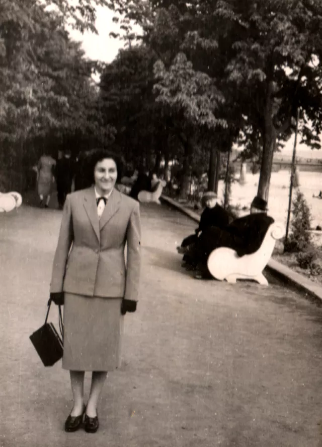 My wife Lubov Neubauer at the River Uzh embankment, near the school where she worked. We were having a stroll and I took this photograph. This photo was taken in Uzhgorod in 1970.