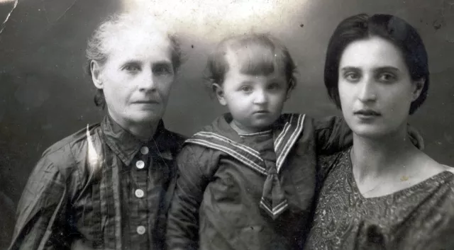 This is me, Igor Brover, my mother Ida Brover and my paternal grandmother Udia Brover. This photo was taken in Ivanovka village in 1936. This photo was particularly made to send it to my father who was on mandatory service in the Red army. There was no photo shop in our village. All of our family photographs were taken by a visiting photographer.