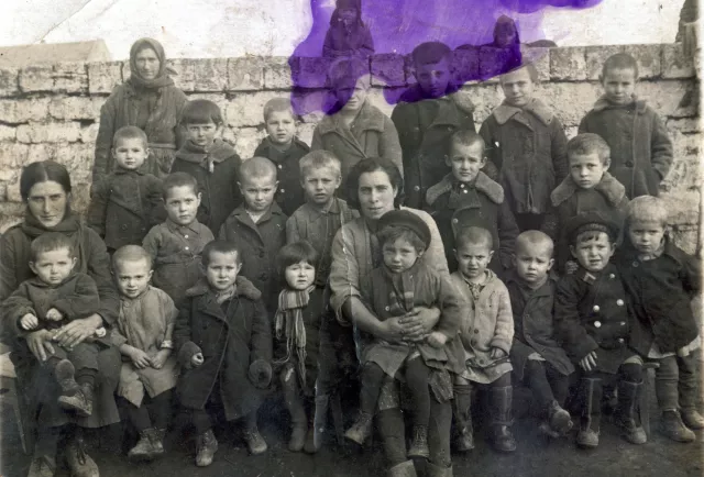 This is my mother Ida Brover (the first from the left) with my sister Raisa in the kolkhoz kindergarten. This photo was taken in Ivanovka village Odessa region in 1945.