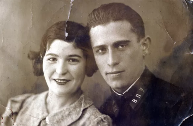 This is my mother's brother Mikhail Popovskiy with his wife Claudia. This photo was taken in Leningrad in 1939.
