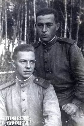 Here I'll tell you about one incident which happened to me near the Narva River. You see I had several photographs of my relatives (the dearest ones) with me and kept them in the breast pocket of my soldier's blouse. The equipment I worked with required accumulators, so we always held them in stock. One day we came short of accumulators and I (together with a group of support) went to the charging station. I made our way along the Narva River. A member of our group suggested to move on the ice, because the road was occupied by moving armies. Well, we started, but the front part of the lorry fell into the scour (fortunately only the bumper went down). We managed to jump out, but certainly got wet through. By the way, it was very cold: 20 degrees centigrade below zero. We started shooting in the air. Soldiers ran up and brought us to the hospital, where nurses (young girls) stripped us naked, took methyl alcohol, worked it in and gave us some spirit to drink. In the morning we felt having no cold, but a part of my photos got slightly wet. Later I got to know that all photos of our family burned down together with our house in Olgino.