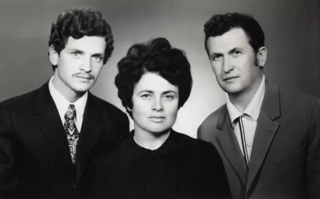 This is me with my husband and our son Iliycho [Ilia] Georgiev Iliev shortly before he was summoned to service in the army. The photo was taken in Ruse in 1972. In 1952 I met my second husband, Georgi Iliev. The same year I found a job with the Regional Council. Georgi worked there, too. He was single and I was in the process of getting divorced. What I liked about him was that he was serious and modest. We got married in Ruse in 1953. My son was born in 1953 and finished his secondary education at the Ruse music school. We knew he had the talent for music, but we didn't expect that he would get addicted to music. This way he outlined his own fate. After that, he graduated from the Conservatory in Sofia, specializing in violin. There he met his wife, Svetla Nikolaeva Toteva, who was also born in Ruse. She's a cello player. Between 1980 and 1992 they were both members of the Ruse Opera orchestra. Then a Brazilian impresario came to the Ruse Opera; I don't know how he persuaded them, but in 1992 twelve members of the orchestra decided to leave for Brazil to strengthen their orchestra there. Off they went and it's now twelve years I haven't seen them. That's what I feel heavy at heart about. In fact, Iliycho went first and two years after him, his wife and two children, Milena and Nikolay, went to join him. They gave birth to a third child there: Victor.