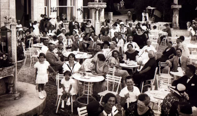 On holiday in Abbazia, Yugoslavia (now Croatia), in the 1920s. The two little girls on the left are me and my sister, and my mother is sitting right behind us. The photo is from the 1920s.