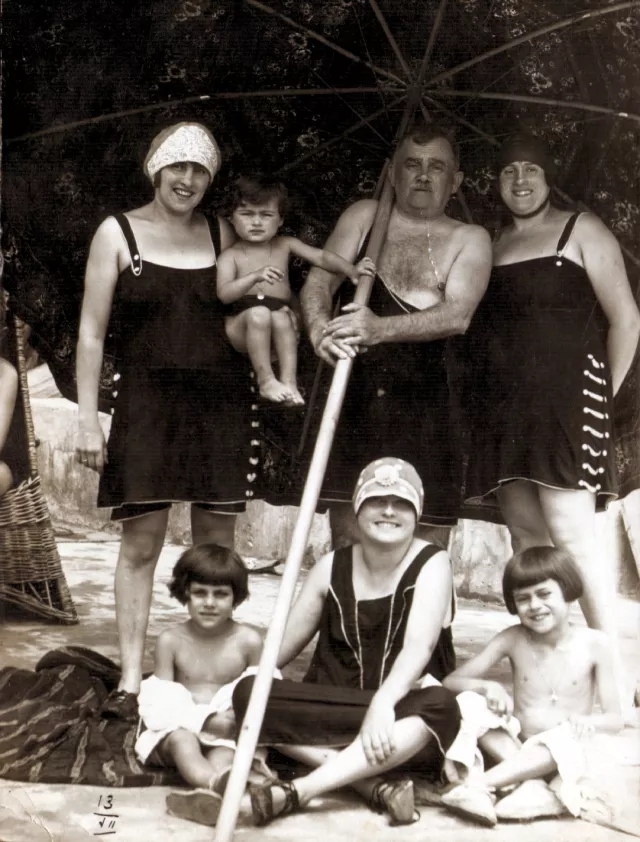On holiday in Abbazia. Standing (from left to right) are my mother's sister, Klara, with her little son, my grandfather and my mother. I am siting in front (on the left), with our ?Fräulein? and my sister. The photo is from the mid-1920s.