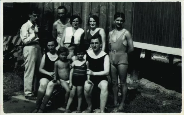 My father with his family on the beach. As you can see, everybody is in swimming suits and he didn’t want to insult anybody and he wanted to participate in the programme but you can see it on this photo too that he kept his clothes on and he is standing a little apart from the group. He kept apart not because he was conceited but this came from the depth of his soul.