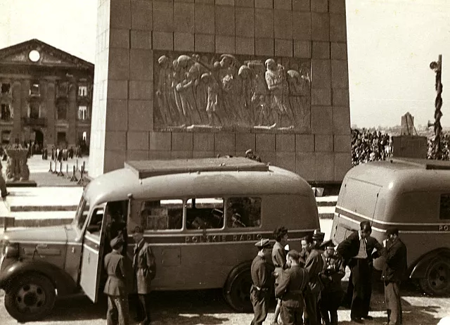 This picture was made just a moment before the inaugural ceremony of the Monument to Warsaw Ghetto Uprising. It was 1948.