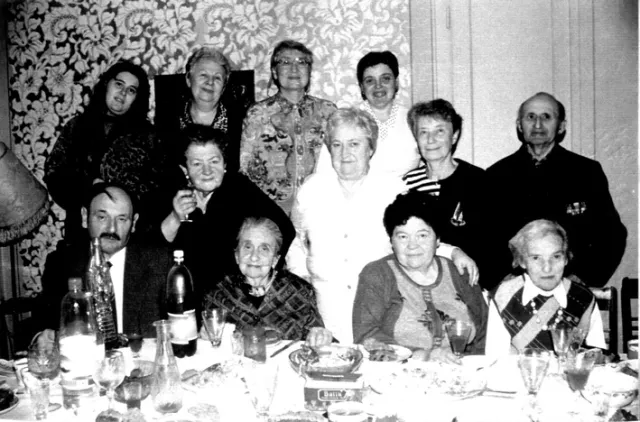 I, Inessa Vitkina, at a birthday party among my friends. I am the third in the upper row and my sister is the third on the left in the second row. Photo made in Chernovtsy in 2000.