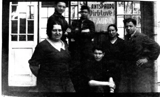 My aunt Leya Vitkina. She is photographed among employees of the printing office.