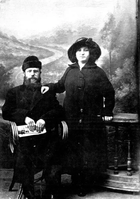 My grandfather Isaak Vitkin and his wife Miriam Vitkina. I know little about my grandmother. She was born in Lithuania in 1860s. I have no information about my Ganny's family. My grandfather and grandmother had 6 children. They had more, but those 6 survived. My grandmother did some farming and kept few cows. The children helped her around. Every day after milking the cows my grandmother made cottage cheese and butter and the children went to Shauliai to deliver the dairies to their customers. Their family lived on what they earned.