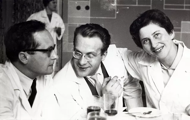 This is me and my friends from Psychiatric Clinic: Ryszard Krasilewicz and Adam Bukowczyk. The photo was taken in the 1960s. At that time we were all working as teachers in that Psychiatric Clinic.