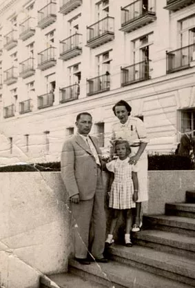 Here you can see my with parents on a walk in Riga. From left to right: my father Naftole-Hertz Shein, I, my mother Evgeniya Shein, nee Goldberg. The photograph was taken in Riga in 1938.