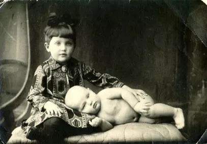 This is me and my younger brother Yefim, I am wearing a brooch with my father's portrait. This photo was made in Nezhin in 1936.