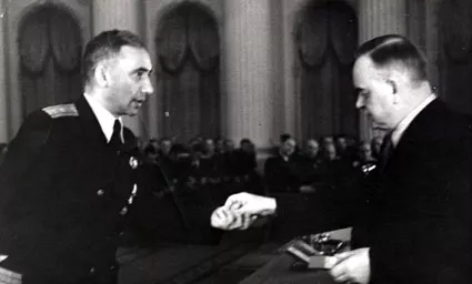The pride of our family, my father's brother Pyotr (Jewish name Pinia) Mindel receives an order for combat merits in the Kremlin. This photo was made in Moscow in 1953.