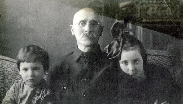 Irina Soboleva-Ginsburg with her grandfather and her brother