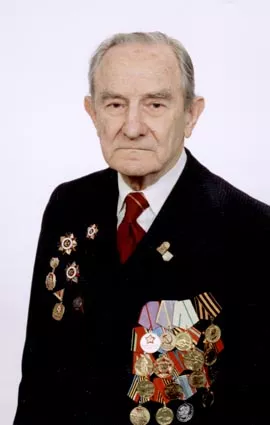 This is me. There was a large photo exhibition in the Jewish Community of Estonia, organized on the occasion of the Victory Day on 9th May 2005. I was photographed as veteran of the Estonian corps. My awards: to the left is the front-line soldier insignia, then two orders of the Great Patriotic War of the 2nd and 1st class. The order of the Great Patriotic War of the 2nd class was given for battles in Kurland, the 1st class orders were given to war veterans when the war was over. Then there’s an Order For the Defense of Leningrad and for the victory over Germany. To the right are jubilee medals. The picture was taken in Tallinn in 2005.