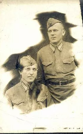 This is a photo of my father, Isaak Eizerovich Alpert with his military friend. It was taken during World War II somewhere on the front, I don't know where exactly.