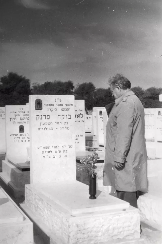 In 1980 I went to Israel in order to pay my last respects to my half-sister, Oro Morits Frank, nee Pilosof. My sister left for Israel as early as 1950. She was married to a hatter in Sofia and thus she mastered this craft. In Israel she also dealt with millinery. We have such a custom to put small stones on the grave, so I had brought some from Bulgaria and I left them on her grave. In the synagogue in Yaffo there is a clock outside running backwards - from right to left, like our writing runs.