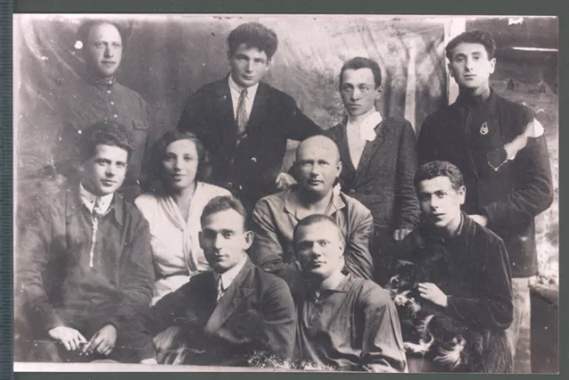 In the upper row of the photo, first from the left, is my father, Israil Maron. The two men standing to the right of him are their friends. To the far right in this row is my Uncle Emmanuil Kosoi, my mother's brother. In the middle row (second from the top) form left to right are: Mikhail Bolshun, my grandmother Mera's brother David Bolshun's son; Mila Bolshun (maiden name Tsirlina), his wife; Miron Goldberg (Mote Maron), my father's brother and Kappa's husband as well as Grandmother Mera's nephew; Efim Elkin, Emmanuil Kosoi's friend. In the front (first row from the bottom) from left to right are: Matvei Tsirlin, Mila, Mikhail Bolshun's wife's brother; Arkadii Kosoi, a friend of the family with the same last name.