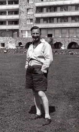 My father in front of the big Galyateto hotel in 1948. That was the first time they gave Outstanding Worker awards, which was came with two weeks vacation. [Outstanding Worker: The first national competition for these awards, based on the Soviet model, were held on March 15, 1948.]