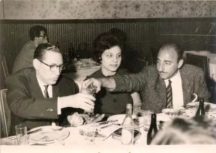 This photo was taken at Palet 2 [a musical fish restaurant in Tarabya, a district on the European shore of the Bosphorus]. You can see my husband, Izak Sarhon on the left, then me and then Izi Levi. Izi Levi was one of our best friends. One night we went to Palet 2 with a group of friends and they took our photo while we were making a toast. I remember having great fun that night. We had another friend, Ceni Rutli who made us laugh all the time. Then there was music, we danced and all in all had a great time.