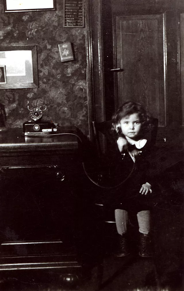 This is a picture of my younger sister Jadzia (Jadwiga) using my father’s telephone. It was taken in the 1930s at our home in Katowice.