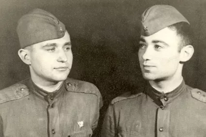 This is my eldest son Jakov at the training in the army. To the left is his pal. 1968. Riga.