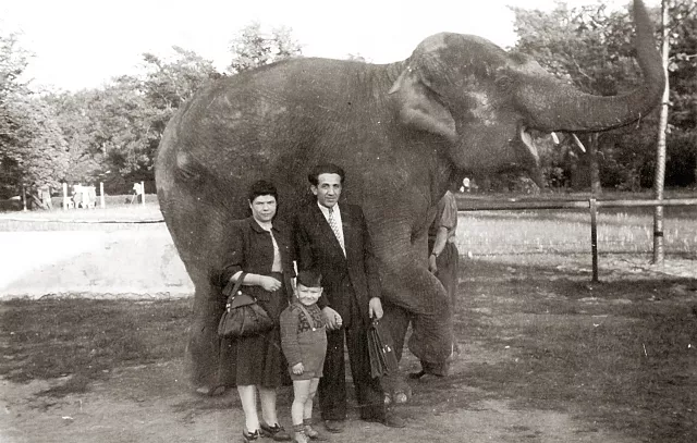 This is me with my wife Frymeta Kalisz and our son at the zoo in Lodz. The photo was taken in 1948, but I don’t remember who took it.