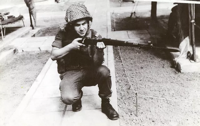 This is my son, photographed when he was serving in the Israeli army. The photo was taken in Israel {then Palestine] in the 1960s. I received it from my son by mail.