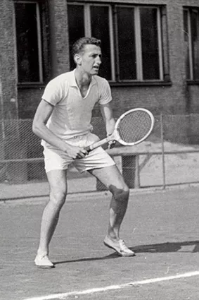 This photo was taken at a regional tennis tournament in central Slovakia in 1956. It shows me, Jan Hanak, when I became champion of the Central Slovakian Region.